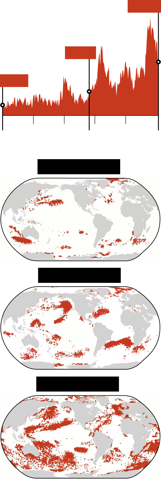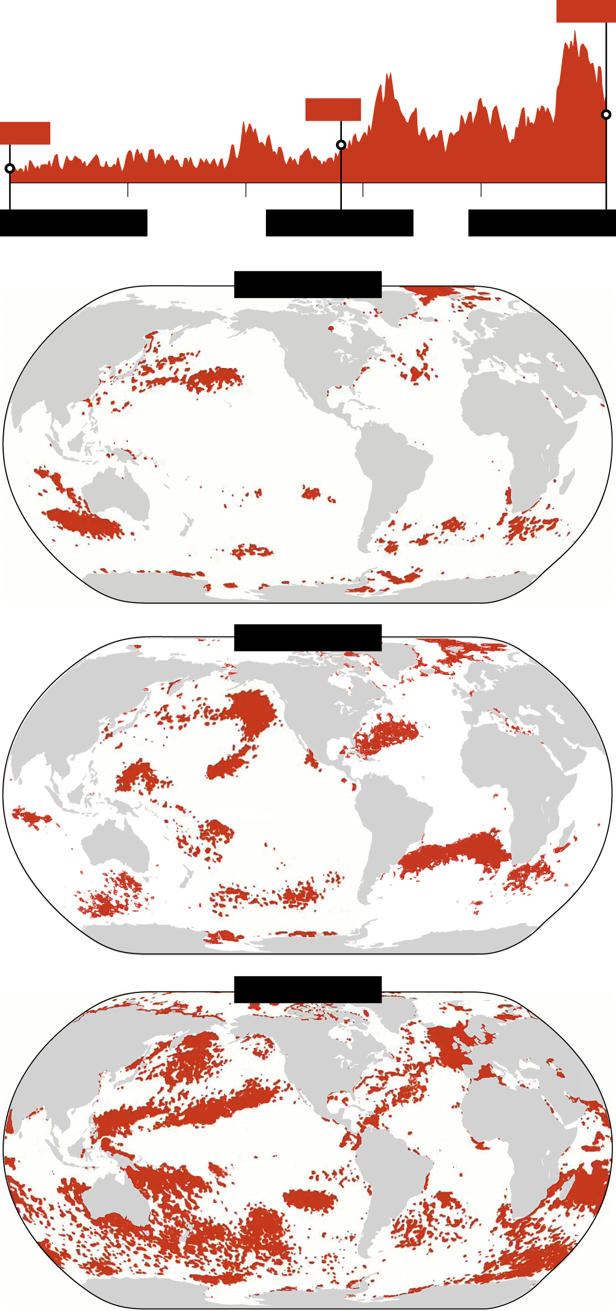 En els darrers anys s'han produït onades de calor inusuals a totes les conques oceàniques principals del planeta, i alguns d'aquests esdeveniments s'han tornat tan intensos que els científics han encunyat un nou terme: les superonades de calor marines. "Els ecosistemes marins on [aquestes onades de calor] es produeixen no havien experimentat mai una temperatura de la superfície del mar tan alta", explica Boyin Huang, oceanògraf de l'Administració Nacional Oceànica i Atmosfèrica (NOAA), per correu electrònic.