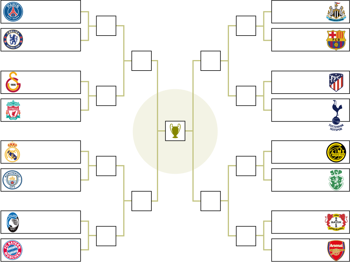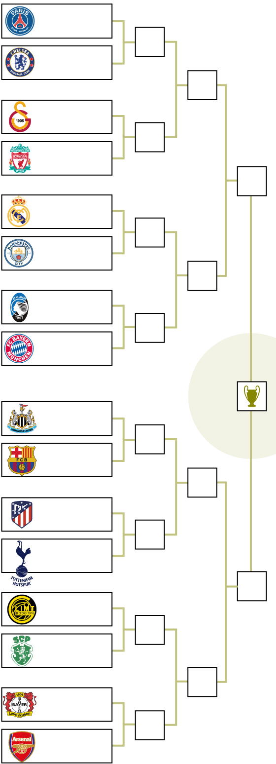 L'anada es disputarà el dimarts 10 de març a Newcastle (21 h), mentre que la tornada serà una setmana després, el dimecres 18 de març, al Camp Nou (18:45 h). A més, serà el primer partit del nou president blaugrana, tot i que oficialment no accedirà al càrrec fins a l'1 de juliol. Barça i Reial Madrid aniran per bandes diferents i no es podran trobar fins a la final. Els blancs s'enfrontaran al Manchester City amb l'anada al Santiago Bernabéu. Els dos equips es veuran novament les cares després de jugar a la fase de la lliga, on els madrilenys van caure per 1-2. Tanmateix, la temporada passada el Madrid va ser capaç d'eliminar els anglesos als play-offs.
