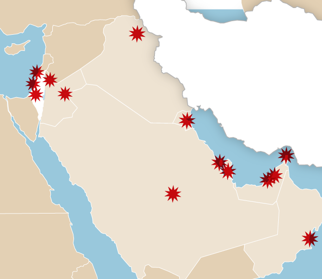 Els balanços són difícils de verificar, perquè totes les parts volen maximitzar els seus cops i minimitzar els seus danys. L’aviació israeliana afirma que ha llançat més de 1.200 bombes a 24 de les 31 províncies de l’Iran, en la seva ofensiva conjunta amb els Estats Units. El cos de la Guàrdia Revolucionària de l’Iran assegura, per la seva banda, que ha llançat atacs contra Israel i contra 27 bases al Pròxim Orient on hi ha desplegades tropes nord-americanes en vuit països de la regió: Bahrain, l’Iraq, Jordània, Kuwait, Oman, Qatar, Iraq, l’Aràbia Saudita i els Emirats Àrabs Units. La majoria d’aquests atacs han estat interceptats.
