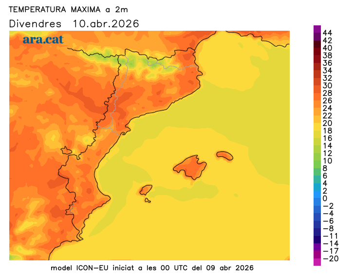 On també ha fet molta calor és al nord-est, amb màximes que localment han superat els 28 ºC. Divendres es mantindrà l’ambient molt càlid, amb sol i boires costaneres que mantindran els termòmetres més frenats a la franja litoral. Però el cap de setmana arribaran canvis. L’apropament d’un embossament d’aire fred i d’un front atlàntic provocarà un augment dels intervals de núvols d’oest a est al llarg de dissabte, amb els primers ruixats al Pirineu i a l’oest al tard. Diumenge tindrem un canvi radical de temps, amb una contundent refrescada, vent del nord i xàfecs en diverses comarques.