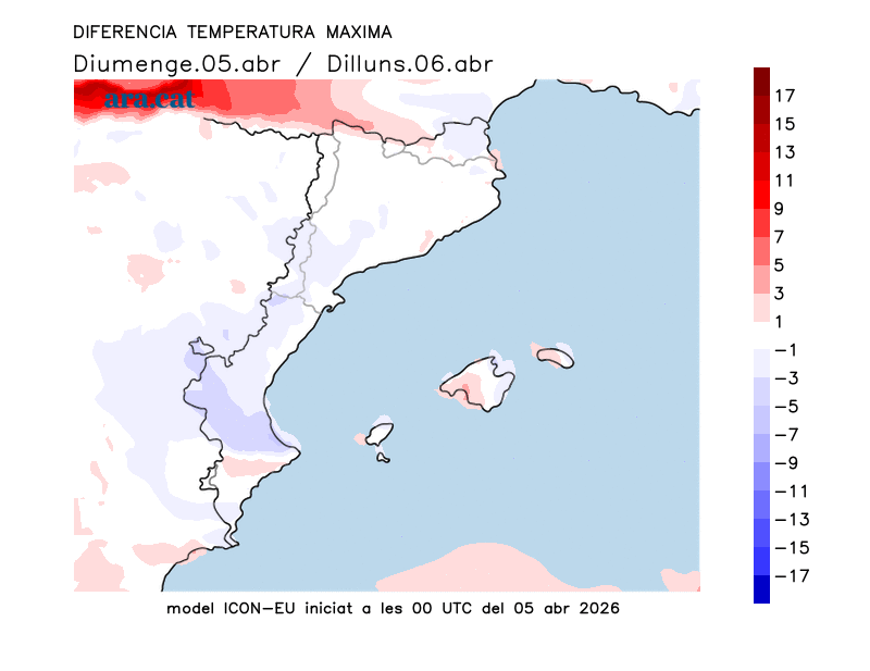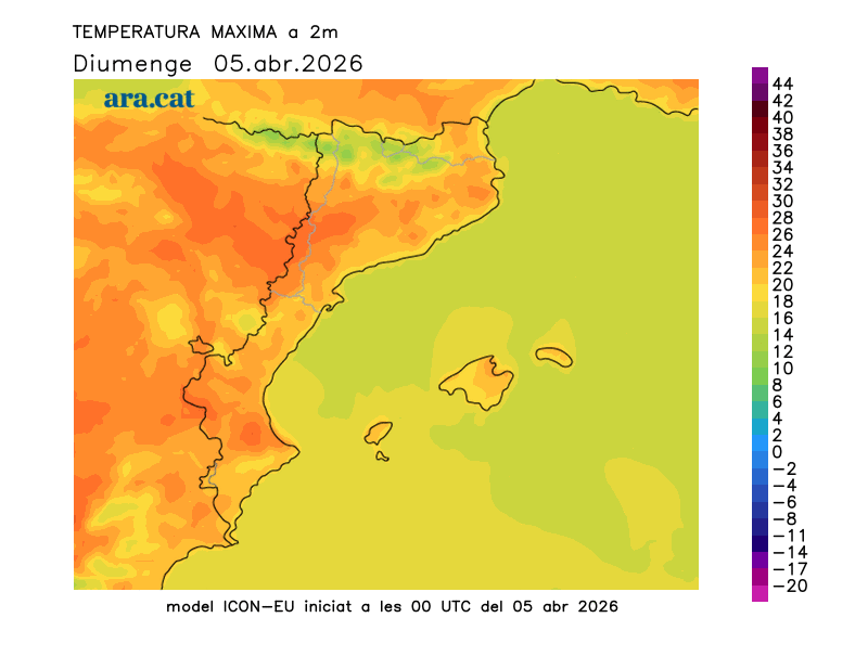 BarcelonaL'anticicló manté allunyats els fronts atlàntics i la seva dorsal càlida fa que el termòmetre remunti amb força durant el dia. Aquest diumenge, per exemple, han fregat els 30 °C a Ponent, amb 29,5 °C registrats a Alcarràs. Ha estat un dels registres més elevats per un 5 d'abril en aquest observatori, tot i que no s'ha batut el rècord absolut del mes, registrat el 28 d'abril de 2023, amb 31,7 ºC. Aquesta mateixa calor ha afavorit el creixement de núvols convectius en punts de muntanya que han deixat algun ruixat al Pirineu (1,5 l/m2 a Ulldeter i 0,5 l/m2 a Puigcerdà).