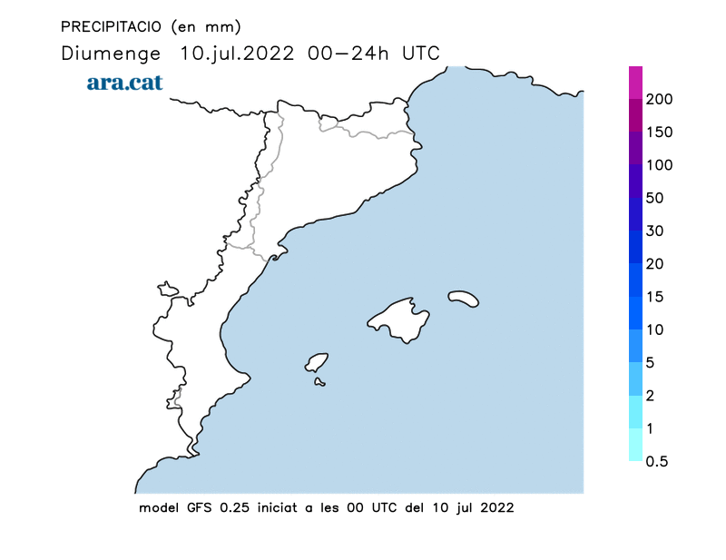 I la setmana que ve es mantindrà aquesta mateixa dinàmica. La falca anticiclònica continuarà marcant el panorama meteorològic dels pròxims dies i, per tant, anirem parlant d'estabilitat atmosfèrica, de domini del sol i de temperatures de plena canícula. Les últimes actualitzacions dels mapes del temps no deixen entreveure cap tongada de ruixats més o menys generalitzats abans de quinze dies però, a diferència d'ahir, sí que apunten que entre dissabte i l'altre dilluns podrien caure alguns xàfecs de tarda al Pirineu occidental.